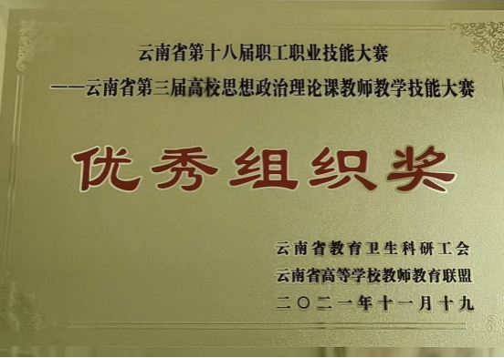 图:云南省职工职业技能大赛“优秀组织奖”