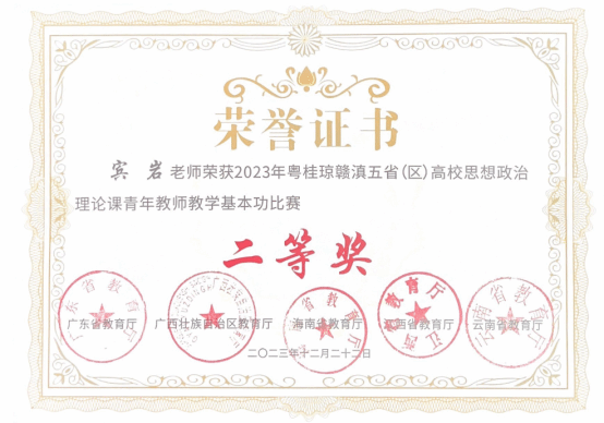 图:宾岩获奖证书