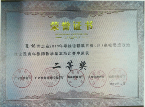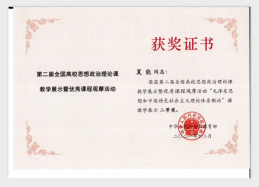 图:夏能获奖证书