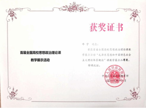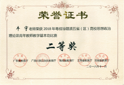 图:2019年牛宇教育部展示二等奖
