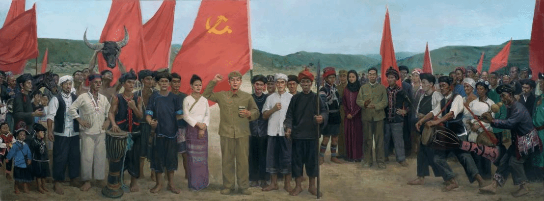 图 美术公司10位青年教师创作的大型主题油画作品《永远跟党走——云南民族团结誓词碑》入藏北京民族文化宫并长期展出