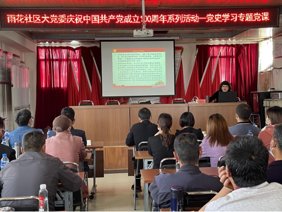 本次专题党课以学习中国共产党党史为主线,立足中国共产党云南历史,并根据雨花社区党员不同的年龄结构和属地特点,陈瑞琪副经理以通俗易懂的语言带领大家一起回顾了党的悠久历史和优良传统,通过历史事件的回放,阐述了“马克思主义为什么行,中国共产党为什么能,社会主义为什么好”的深层涵义;从“五四曙光”到中国共产党成立,再到扎西会议与红军巧渡金沙江等历史事实,陈瑞琪副经理娓娓道来,在讲到我们党在新民主主义革命时期面临的危机和风险、云南党组织恢复重建及抗日战争时,大家深刻理解了中国共产党为了中华民族的伟大复兴所面对的困难与所付出的巨大努力和牺牲,更加珍惜眼前来之不易的幸福生活;特别是讲到王复生、张伯简、王德三、罗彩、张天虚等一批云南籍革命先驱为中国共产党的建立做出巨大贡献时,社区党员们为之动容、振奋。