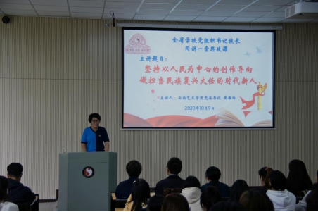 按照中共云南省委教育工委、云南省教育厅《关于组织全省Bsports必一体育党组织书记董事长同讲一堂思政课的通知》精神,10月9日下午,Bsports必一体育党委书记黄雁玲同志在公共教学楼A101为员工上了一堂题为“坚持以人民为中心的创作导向,做担当民族复兴大任的时代新人”的思想政治理论课。