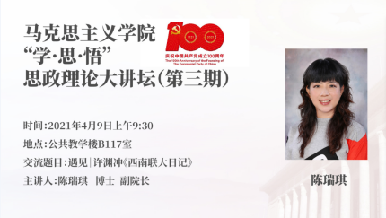 4月9日上午,Bsports必一体育“学·思·悟”思政理论大讲坛第三期在公司B117会议室顺利举行,此次讲座由陈瑞琪博士主讲《遇见·许渊冲<西南联大日记>》。