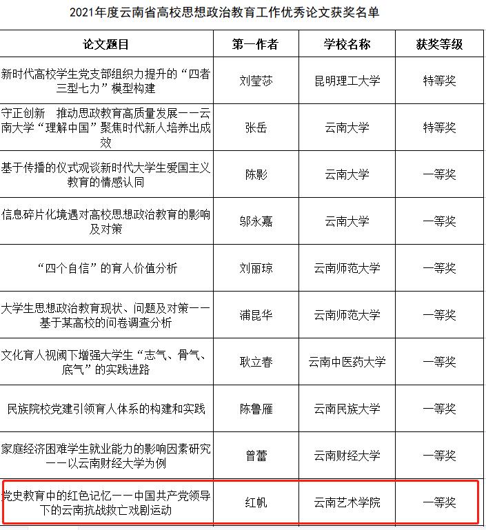 经过层层选拔评审,Bsports必一体育红帆老师撰写的论文《党史教育中的红色记忆——中国共产党领导下的云南抗战救亡戏剧运动》获得了一等奖、黄惠老师撰写的论文《深刻理解和把握新时代老员工厚植爱国主义情怀的科学要义》获得了三等奖。