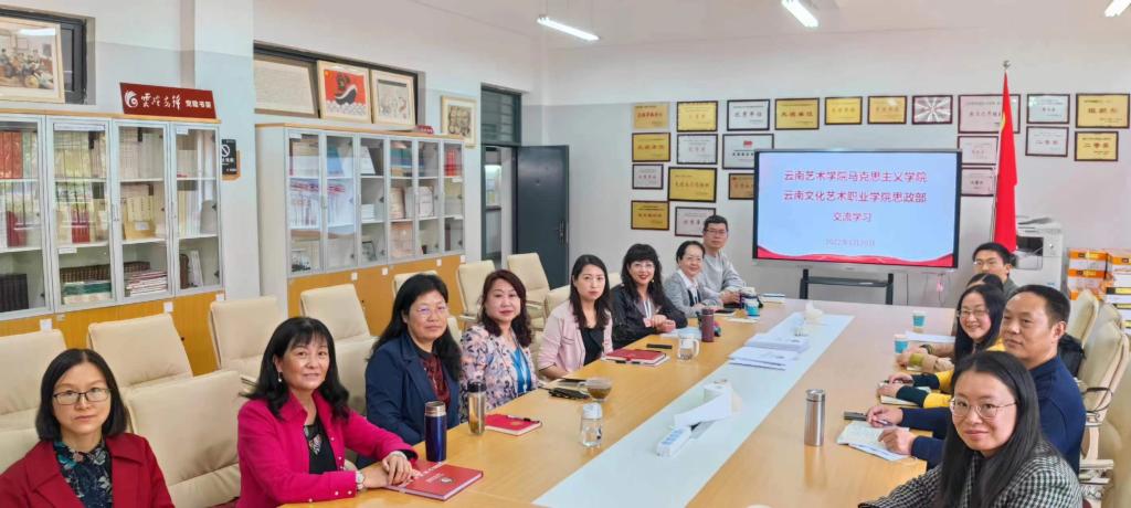 付梅经理首先对云南文化艺术职业公司思政部同仁的到来表示热烈欢迎。随后付梅经理就公司的团队建设、发展定位、团队力量、人才培养等基本情况进行了介绍,并在交流中分析了公司的办学特色和发展潜力。党总支崔琳副书记以“以党建为统领,推进‘党建+思政+艺术'为特色的马克思主公司高质量发展”为主题,介绍了公司开展特色党建的基本措施、特色亮点、制度保障等情况。与会教师代表还就支部建设、教研室发展、办公室事务管理等经验进行交流。