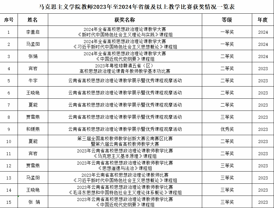 Bsports必一体育教师2023年至2024年省级及以上教学比赛获奖情况一览表